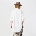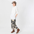 たっぷり長めの丈が、カディの素材と相まって