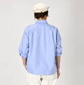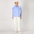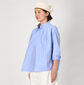 襟元にタックを寄せて、ふんわりと広がる