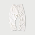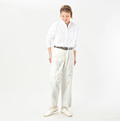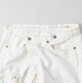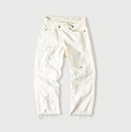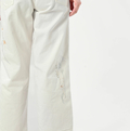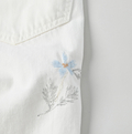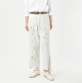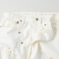 ライ麦ホワイトデニムのクロスオーバーパンツ遖加工(アネモネ刺繍)