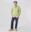 表と裏、どちらも表。触れた瞬間に、綿本来のやわらかさを感じるスムースニットは、鮮やかな発色の17色。希少なスーピマコットンを時間をかけて両面から編み立てた贅沢な素材は弾力のあるもっちもちの仕上がりです。真心が込められたニットソーは裏の縫い代まで美しく、素肌への不快感をとことんなくした作り手の想いが伝わります。ヴィンテージをお手本にしたユニセックスのヘンリーネックは、襟元すっきり少し細身のシルエットです。春色ニットの着こなしはこちら特集ページはこちらモデル身長170cm着用サイズ02-Sモデル身長173cm着用サイズ04-L