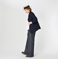 大きなラペルと立体的なポケットがアクセント。