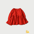 ふんわりギャザーと後ろリボンが