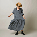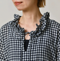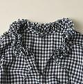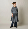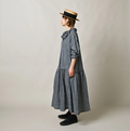 ガーゼギンガムのフリルカラードレス(インディゴ)