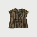 インドリネンサックのフリンジノースリーブトップ(藍)