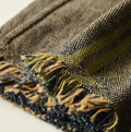 手染めの藍糸と生成の糸を織り込んで、