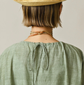 ふんわりギャザーと後ろリボンが
