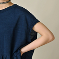 ONEONE 宝物のリネン天竺ギャザーMキャミ(インディゴ)