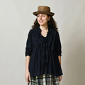 ガーゼ天竺のフリルカシュクール(インディゴ)